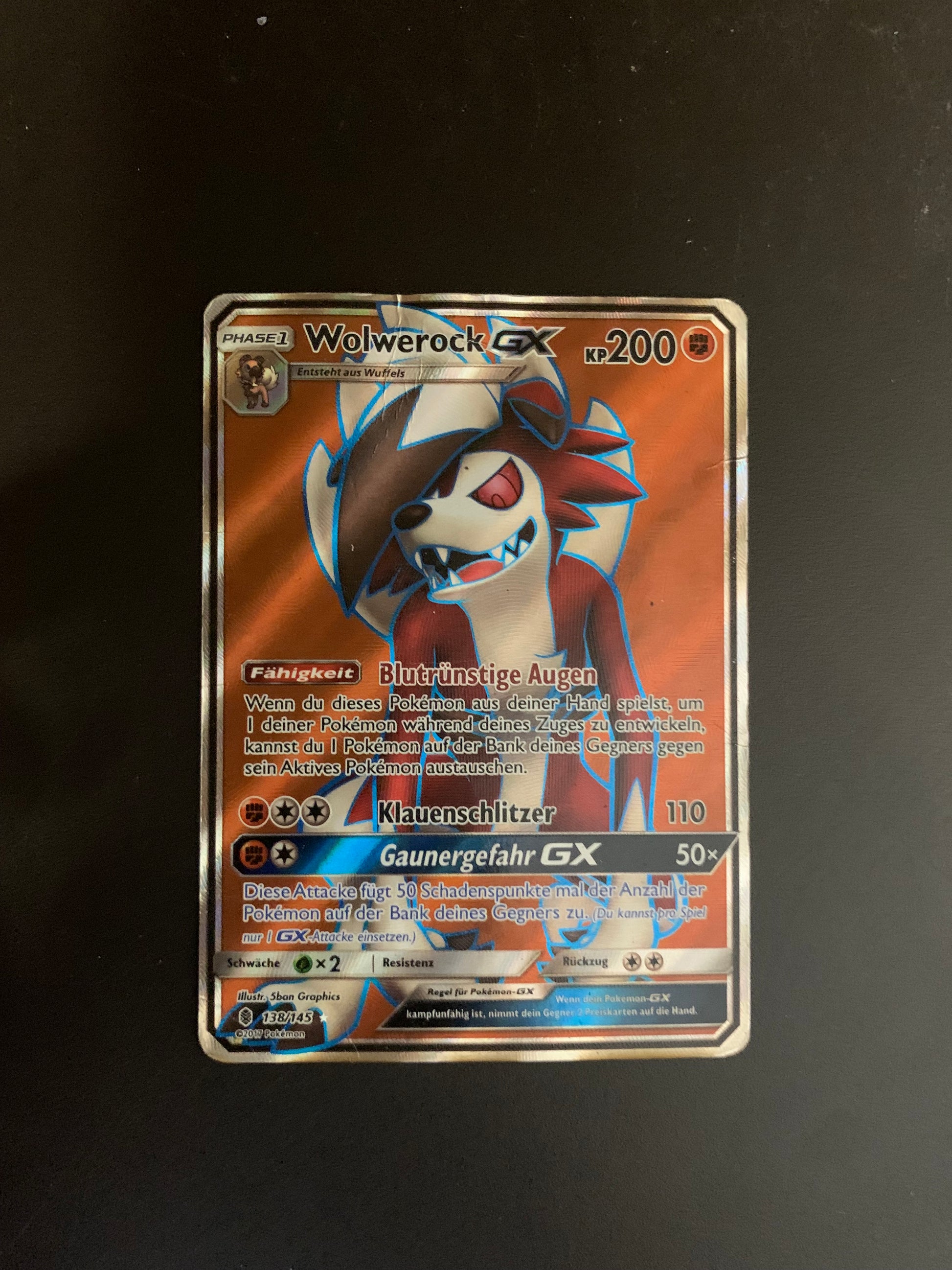 Pokemon Karte GX Fullart Wolwerock 138/145 Deutsch