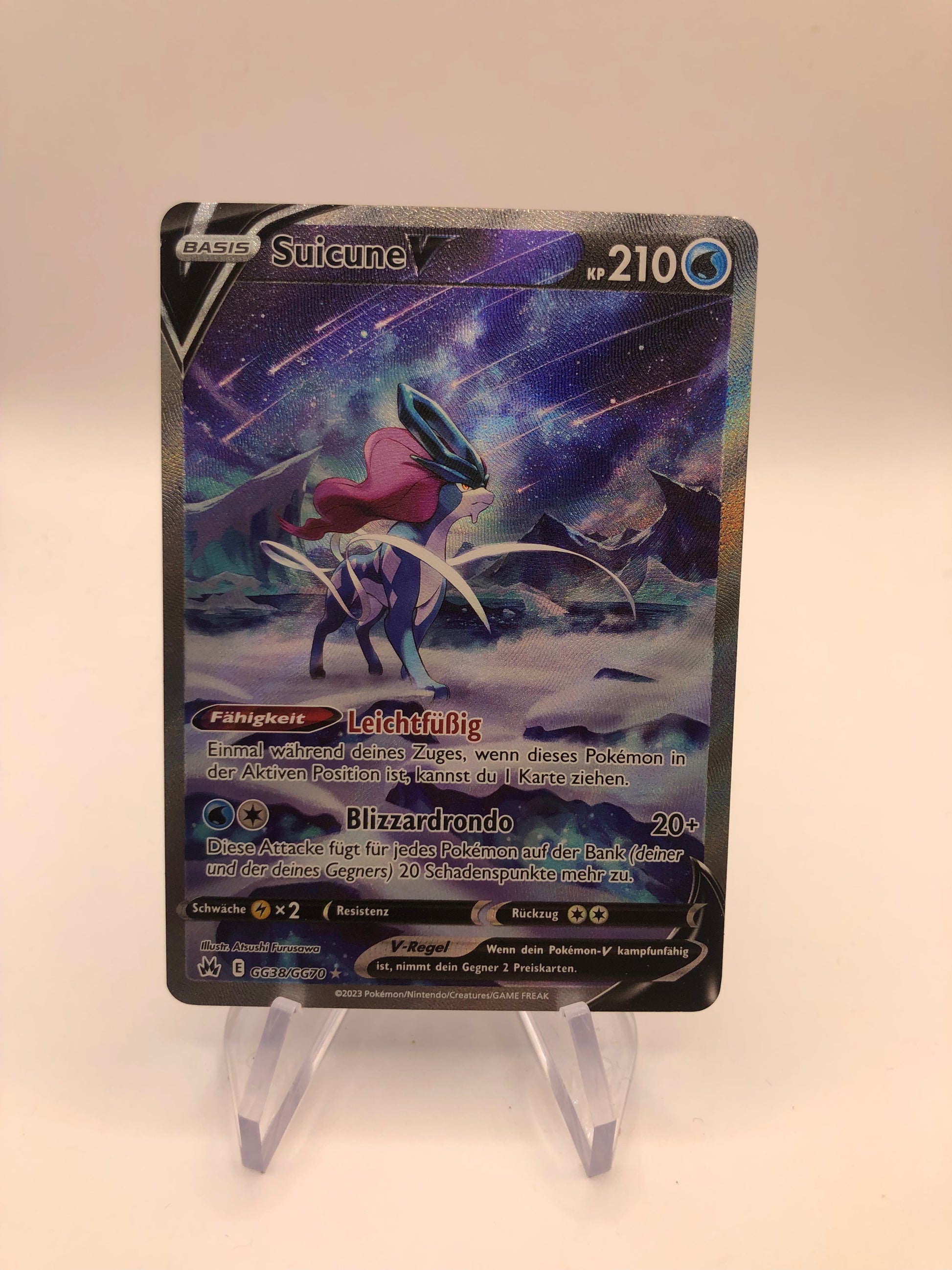 Die Pokemon Karte V Fullart Suicune GG38/GG70 Deutsch ist ein wertvolles Sammlerstück für alle Pokémon-Fans. Die vollflächige Illustration der legendären Pokémon-Figur Suicune macht diese Karte zu einem besonderen Highlight. Sichern Sie sich jetzt Ihr Exemplar und vervollständigen Sie Ihre Sammlung!